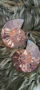 Ammoniet is een uitgestorven inktvissoort die wereldwijd in grote getale voorkwam. De laatste Ammonieten stierven 65 miljoen jaar geleden uit. Ammoniet heeft een zeer krachtige werking. Het bevordert de energiestroom in het lichaam en ondersteund het zelfhelend vermogen. Daarnaast helpt het mee oude trauma’s en emotionele wonden te helen. Dit fossiel zorgt ervoor dat je eenheid, liefde en veiligheid voelt. Werkt aardend en richt zich op het basischakra. Met ondersteuning van de Ammoniet laat je het verleden makkelijker achter je en wordt je je bewust van je persoonlijke kracht