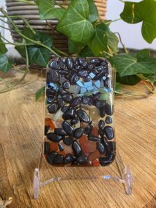 De basis van deze steen bestaat uit een overvloed aan Hematiet. Deze glanzende steen werkt als een bliksemafleider: hij voert negatieve energie af en zorgt voor een ijzersterke aarding.