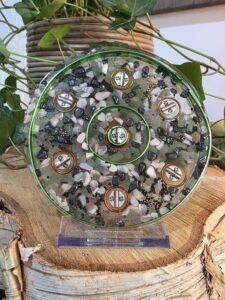 Breng balans, bescherming en natuurlijke energie in je leefruimte met deze unieke, handgemaakte Orgonite onderzetter. Dit krachtige energetische instrument is niet alleen een lust voor het oog, maar fungeert ook als een transformator voor de energie in huis.