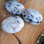 Regenboog Maansteen, ook wel witte Labradoriet genoemd, helpt je om met een bepaalde alertheid en mind-full te leven. De steen verbind je met het kosmische geheel waardoor je invoelingsvermogen en intuïtie versterkt worden. Regenboog Maansteen helpt je om je dromen te herinneren en indrukken te verwerken. De steen heeft een sterke connectie met de vrouwelijke energie van de maan en reguleert de hormooncyclus